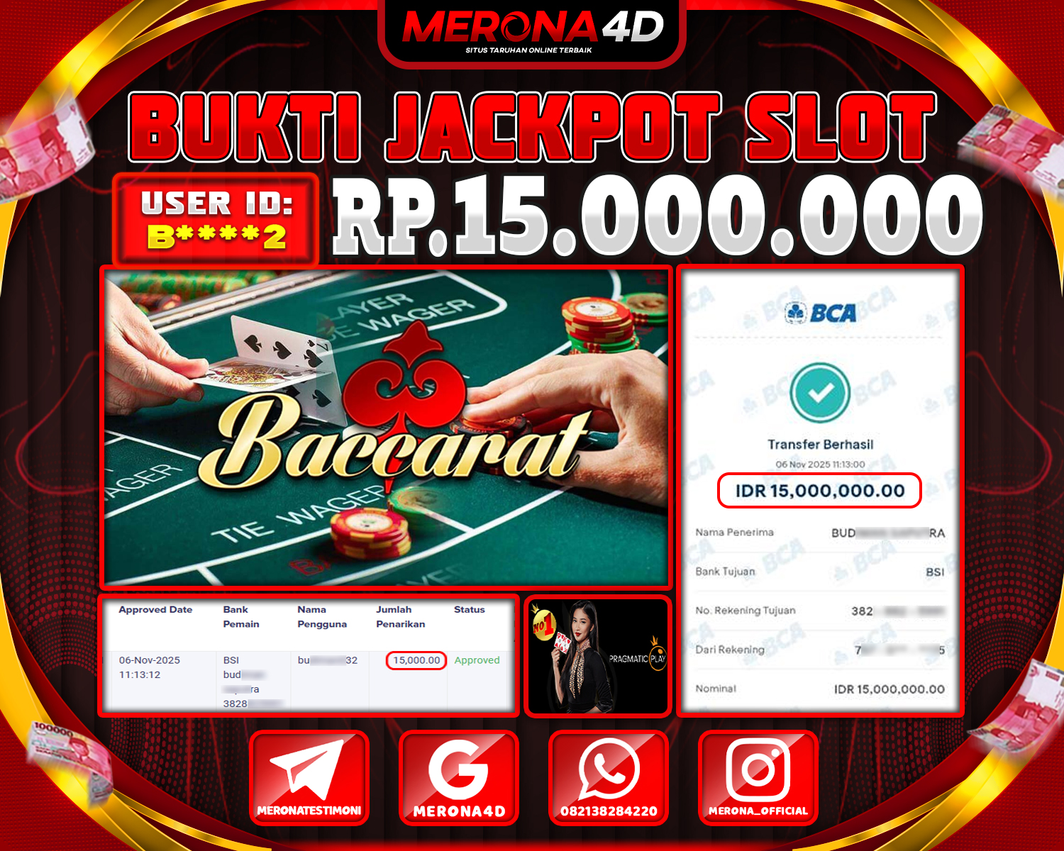 Selamat Kepada Member MERONA4D Bβ­‘οΏ½***οΏ½β­‘2 Telah Jackpot Di BACCARAT