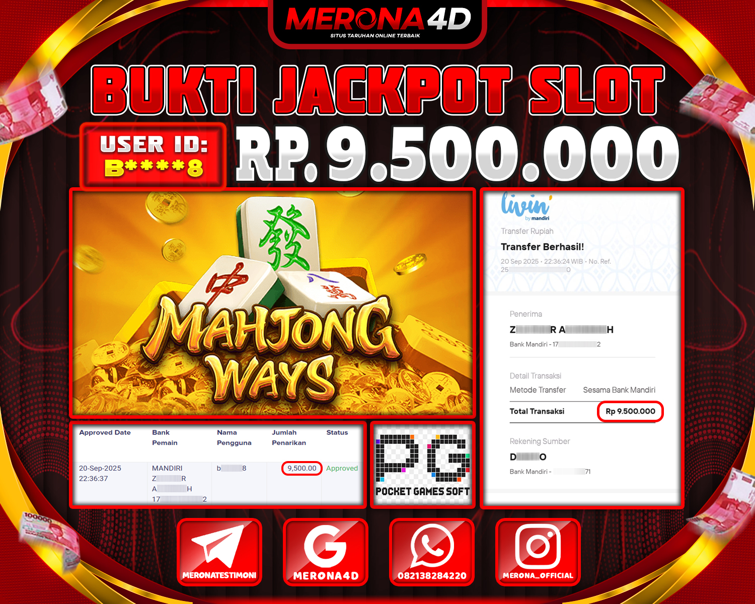 Selamat Kepada Member MERONA4D B****8 Telah Jackpot Di MAHJONG WAYS