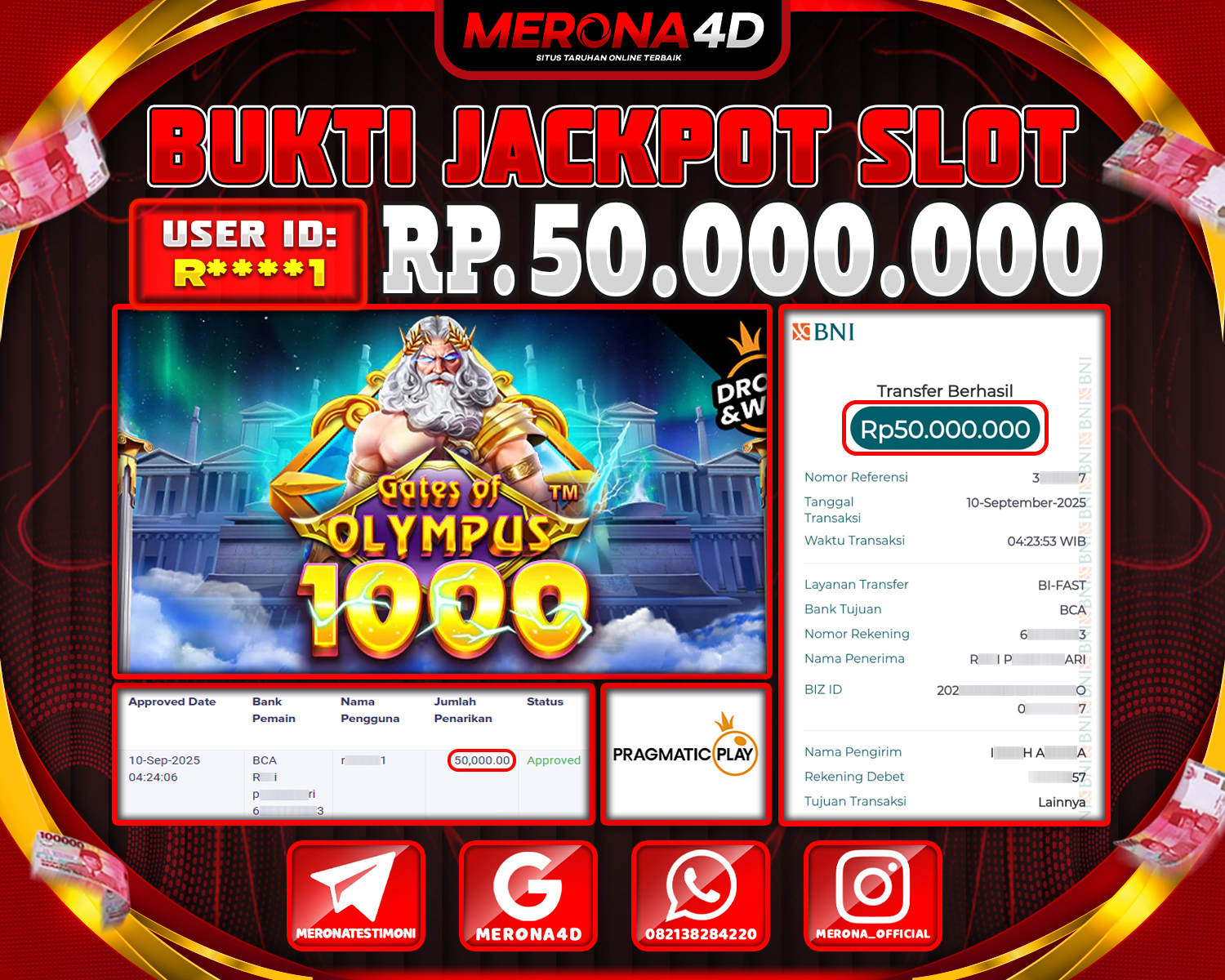 Selamat Kepada Member MERONA4D R****1 Telah Jackpot Di GATES OF OLYMPUS 1000