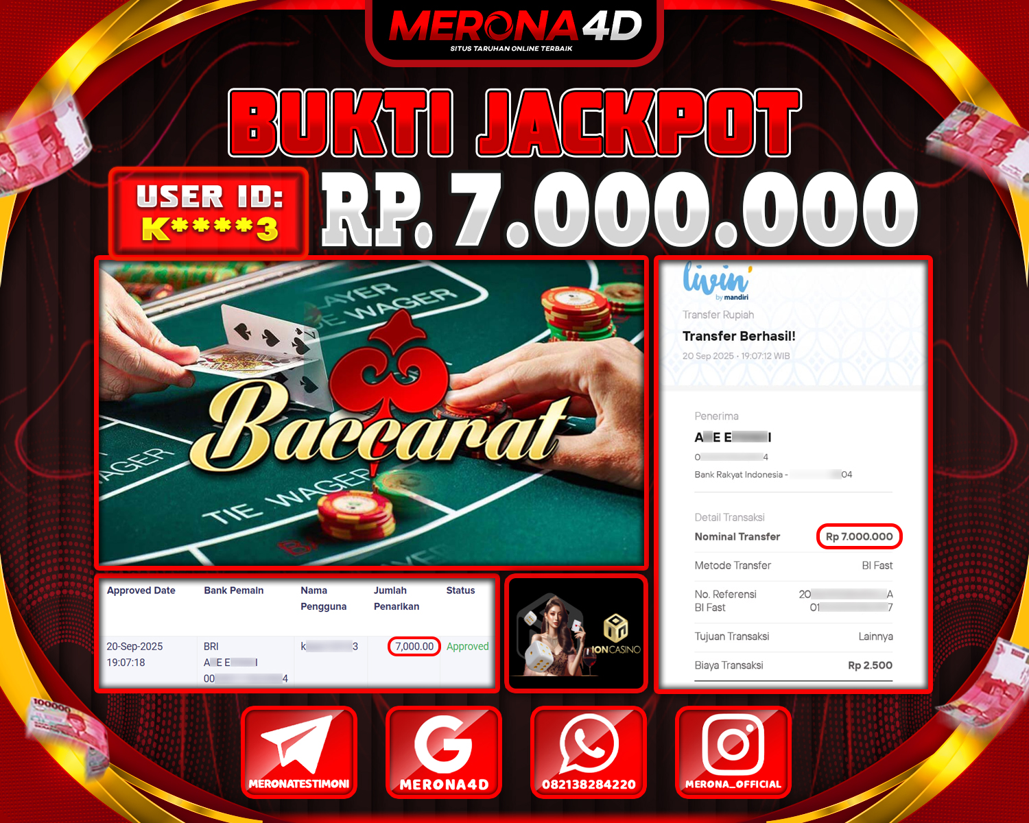 Selamat Kepada Member MERONA4D K****3 Telah Jackpot Di BACCARAT