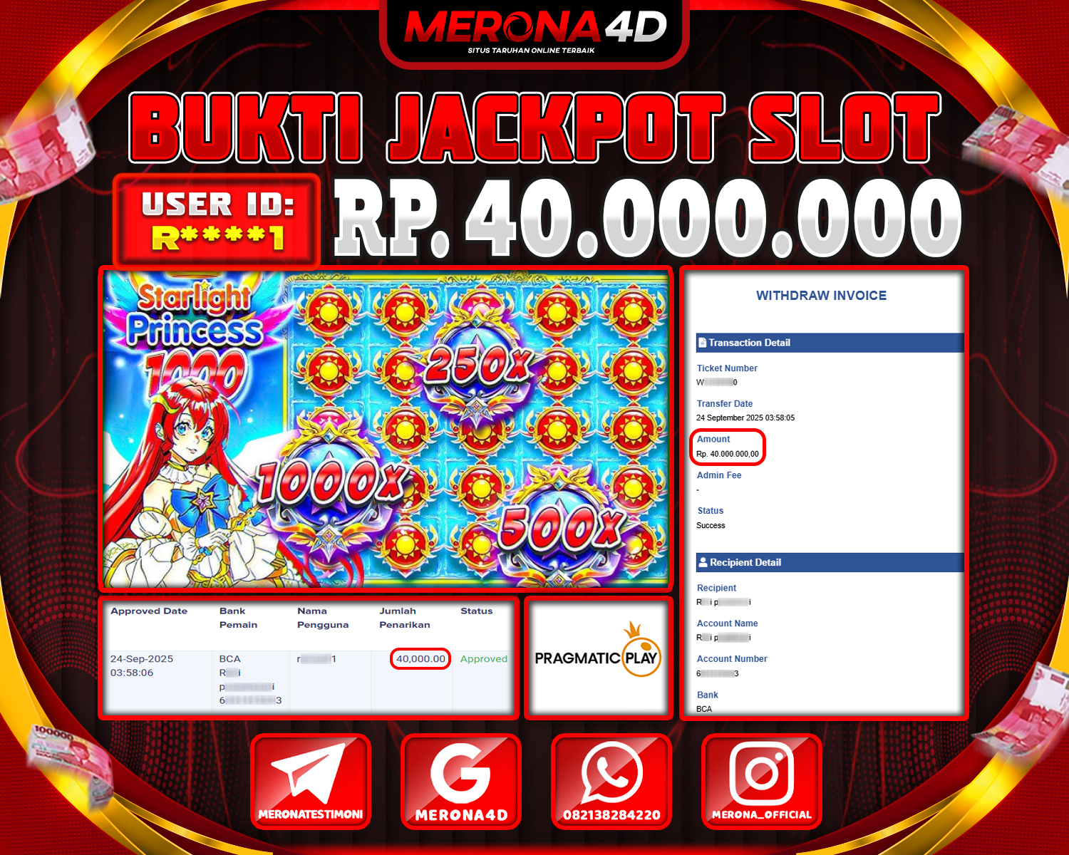 Selamat Kepada Member MERONA4D R****1 Telah Jackpot Di STARLIGHT PRINCESS 1000