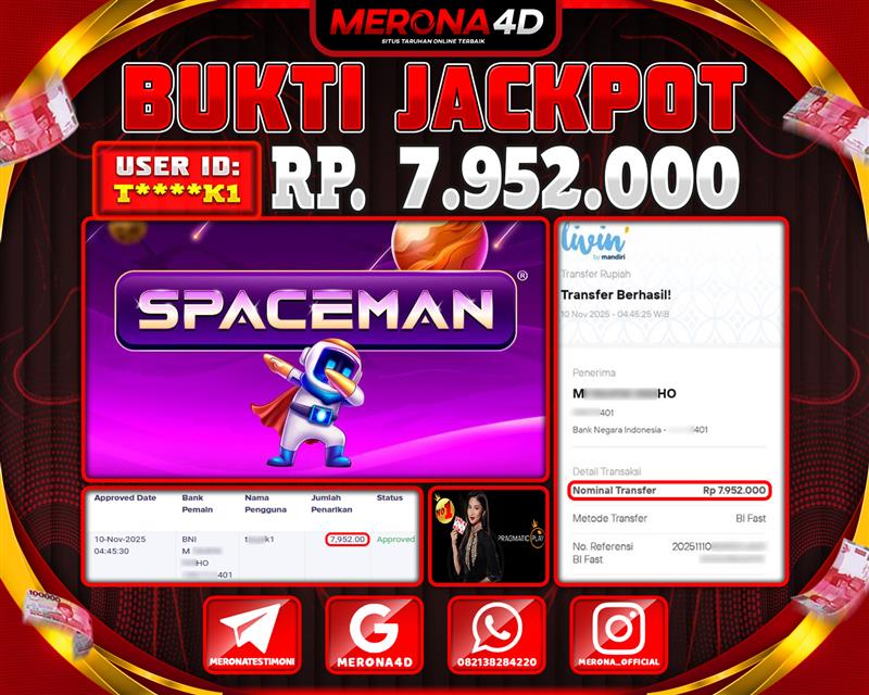 Selamat Kepada Member MERONA4D T*****K1 Telah Jackpot Di SPACEMAN