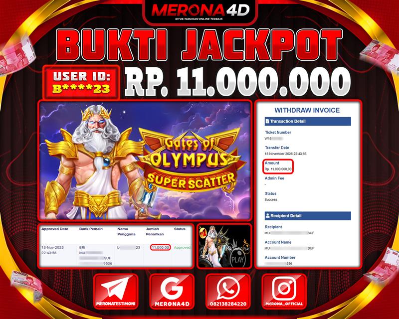Selamat Kepada Member MERONA4D B*****23 Telah Jackpot Di GATES OF OLYMPUS SUPER SCATTER