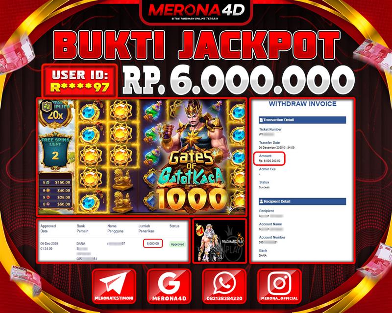 Selamat Kepada Member MERONA4D R*****7 Telah Jackpot Di GATES OF GATOT KACA 1000