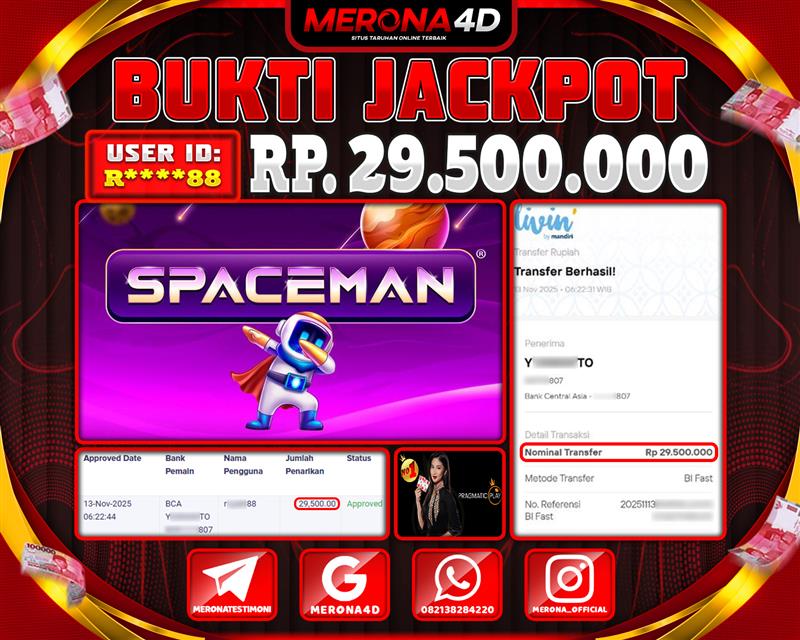 Selamat Kepada Member MERONA4D R*****88 Telah Jackpot Di SPACEMAN