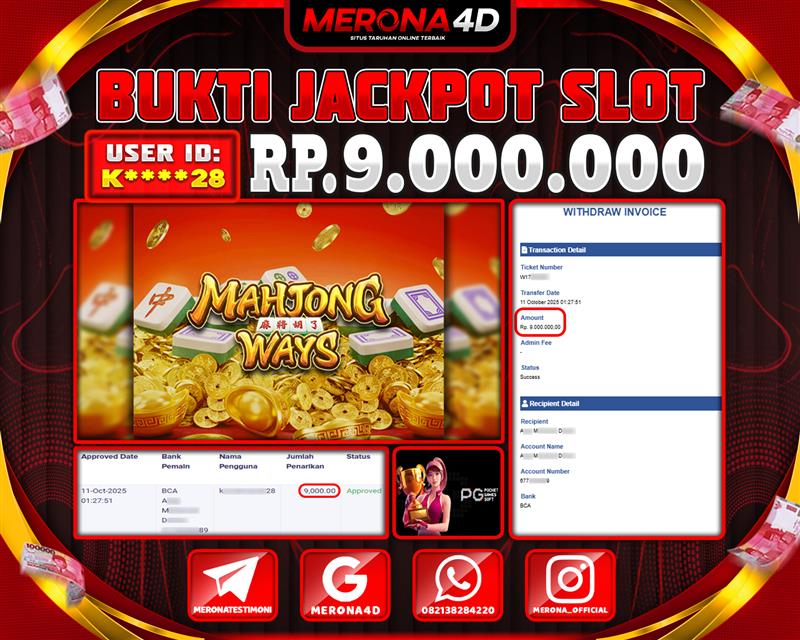 Selamat Kepada Member MERONA4D K*****28 Telah Jackpot Di MAHJONG WAYS