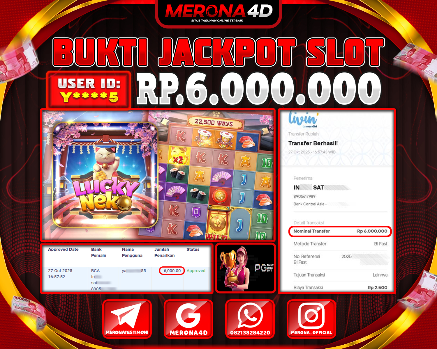 Selamat Kepada Member MERONA4D Yβ­‘οΏ½***οΏ½β­‘5 Telah Jackpot Di LUCKY NEKO