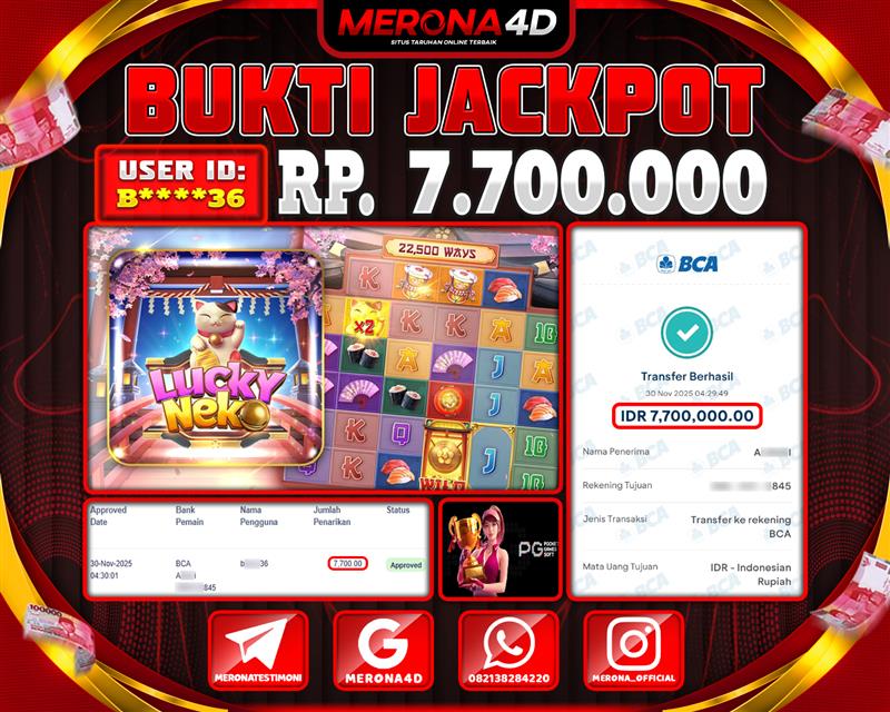 Selamat Kepada Member MERONA4D B*****36 Telah Jackpot Di LUCKY NEKO