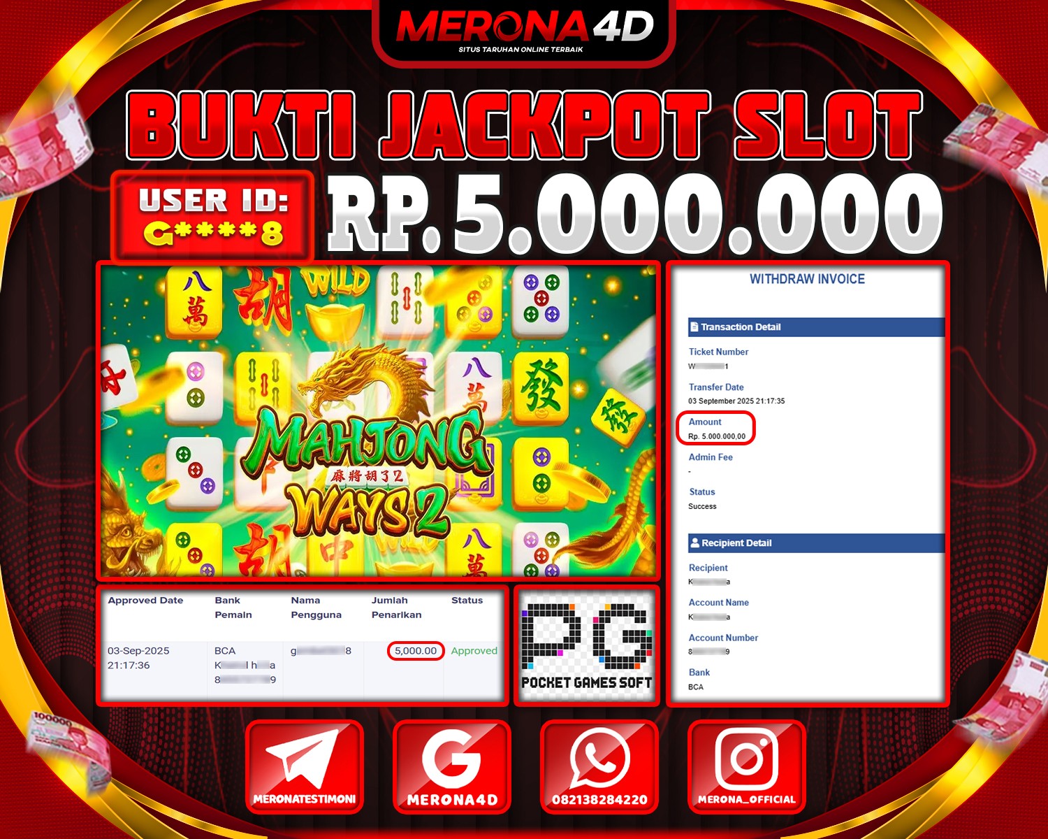 Selamat Kepada Member MERONA4D G****8 Telah Jackpot Di MAHJONG WAYS 2