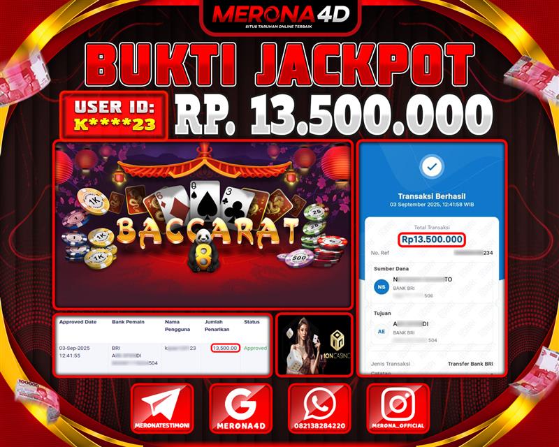Selamat Kepada Member MERONA4D K*****23 Telah Jackpot Di BACCARAT
