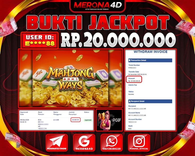 Selamat Kepada Member MERONA4D E*****88 Telah Jackpot Di MAHJONG WAYS 1