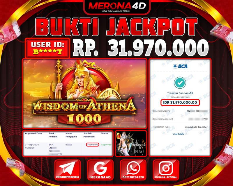 Selamat Kepada Member MERONA4D B*****T Telah Jackpot Di WISDOM OF ATHENA 1000