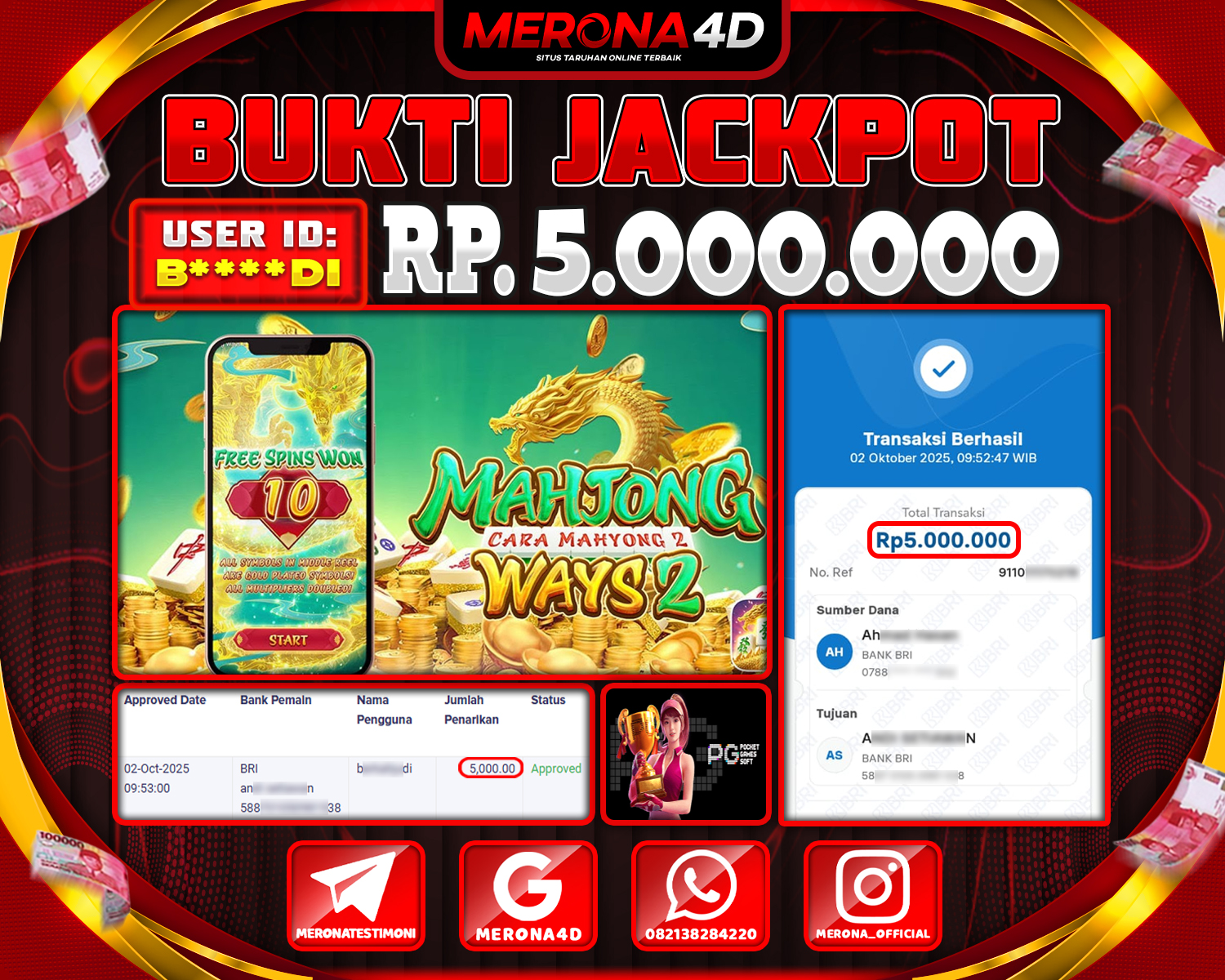 Selamat Kepada Member MERONA4D H****9 Telah Jackpot Di MAHJONG WAYS 2