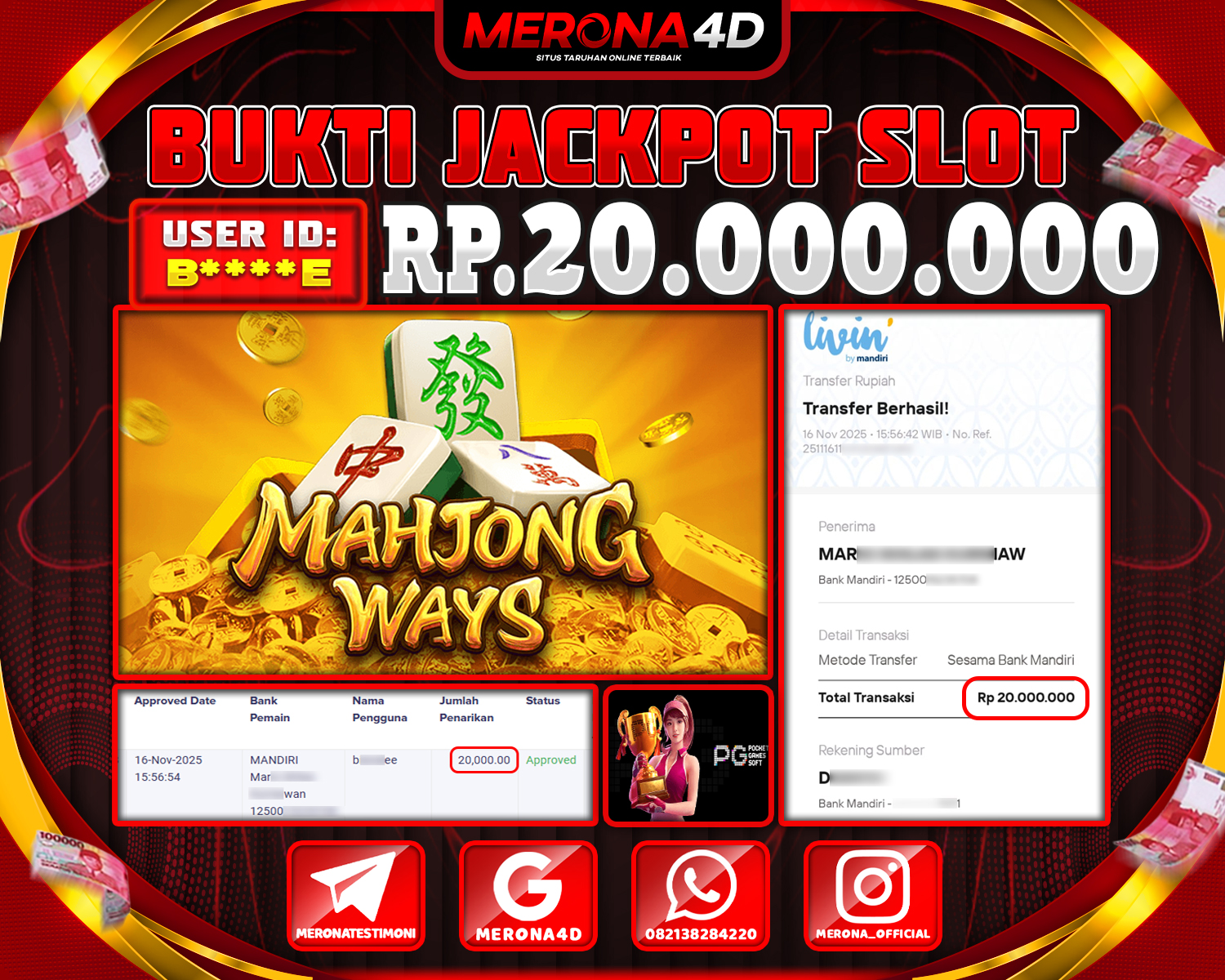 Selamat Kepada Member MERONA4D Bβ­‘οΏ½***οΏ½β­‘E Telah Jackpot Di MAHJONG WAYS