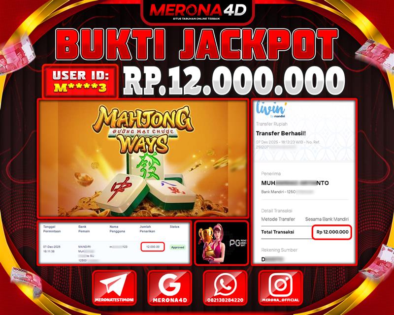 Selamat Kepada Member MERONA4D M*****3 Telah Jackpot Di MAHJONG WAYS
