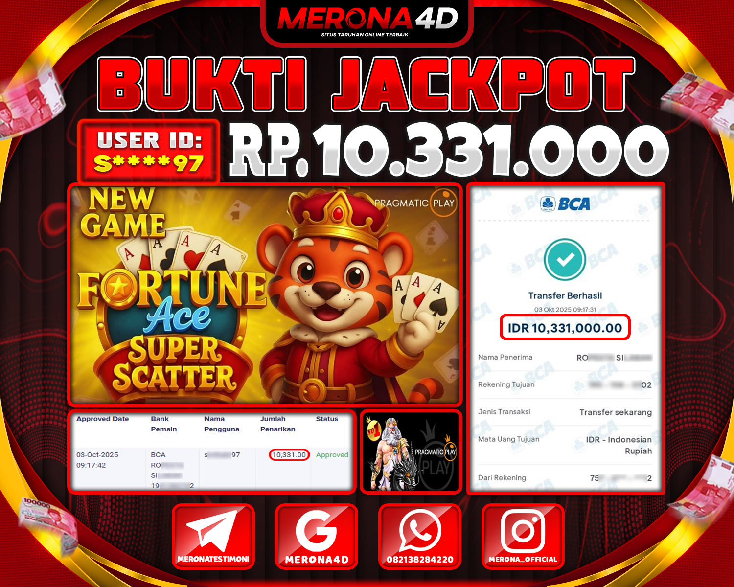 Selamat Kepada Member MERONA4D S*****7 Telah Jackpot Di FORTUNE ACE SUPER SCATTER