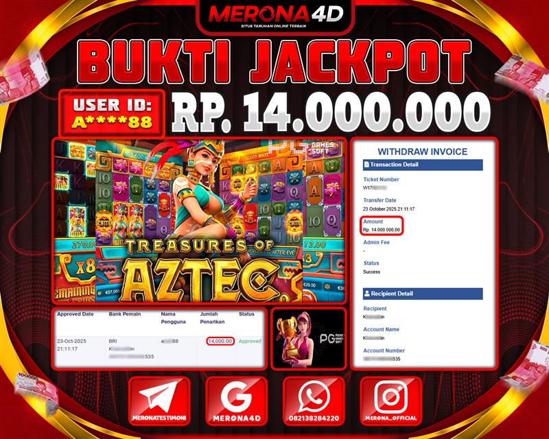Selamat Kepada Member MERONA4D A*****88 Telah Jackpot Di TREASURE OF AZTEC