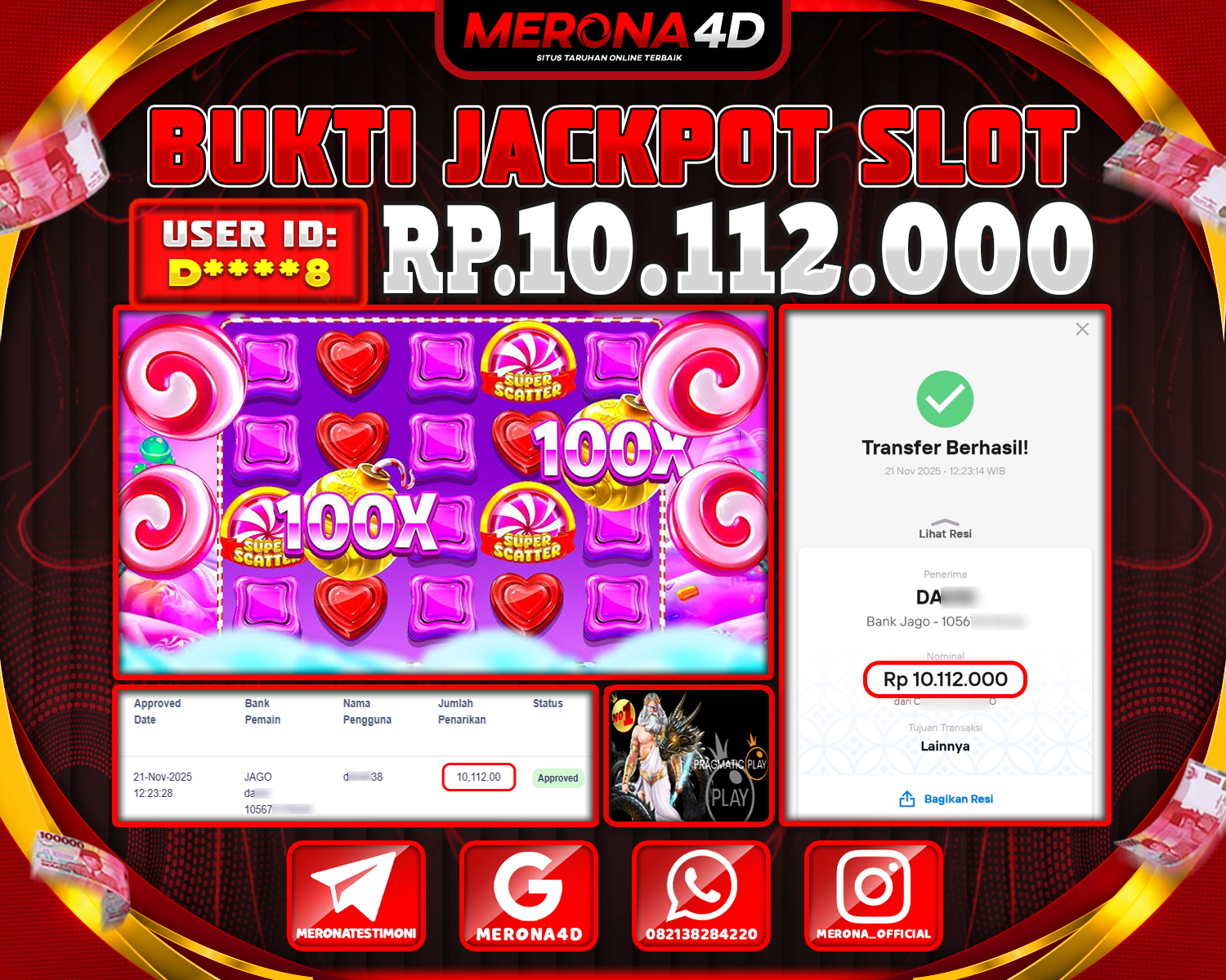 Selamat Kepada Member MERONA4D D****8 Telah Jackpot Di SWEET BONANZA SUPER