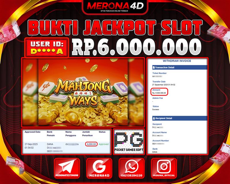 Selamat Kepada Member MERONA4D D⭑�***�⭑A Telah Jackpot Di MAHJONG WAYS 1