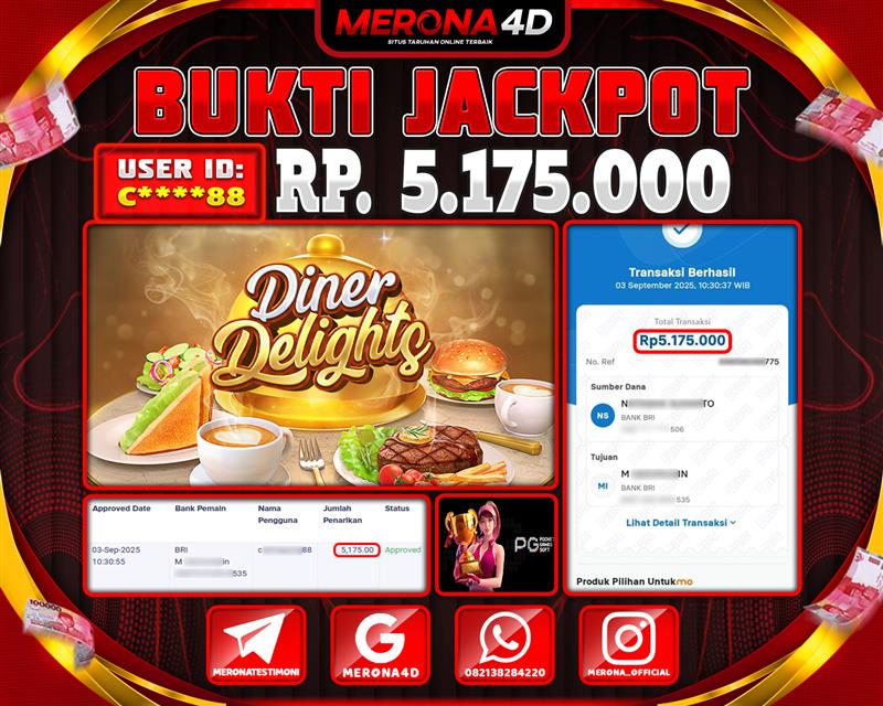 Selamat Kepada Member MERONA4D C*****88 Telah Jackpot Di DINER DELIGHTS
