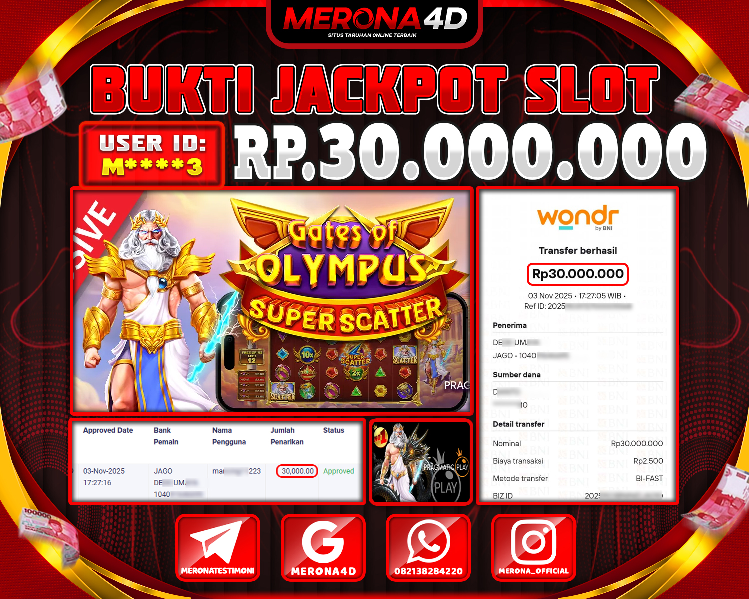 Selamat Kepada Member MERONA4D Mβ­‘οΏ½***οΏ½β­‘3 Telah Jackpot Di GATES OF OLYMPUS SUPER SCATTER