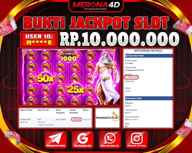 Selamat Kepada Member MERONA4D Rβ­‘οΏ½***οΏ½β­‘5 Telah Jackpot Di GATES OF OLYMPUS 1000