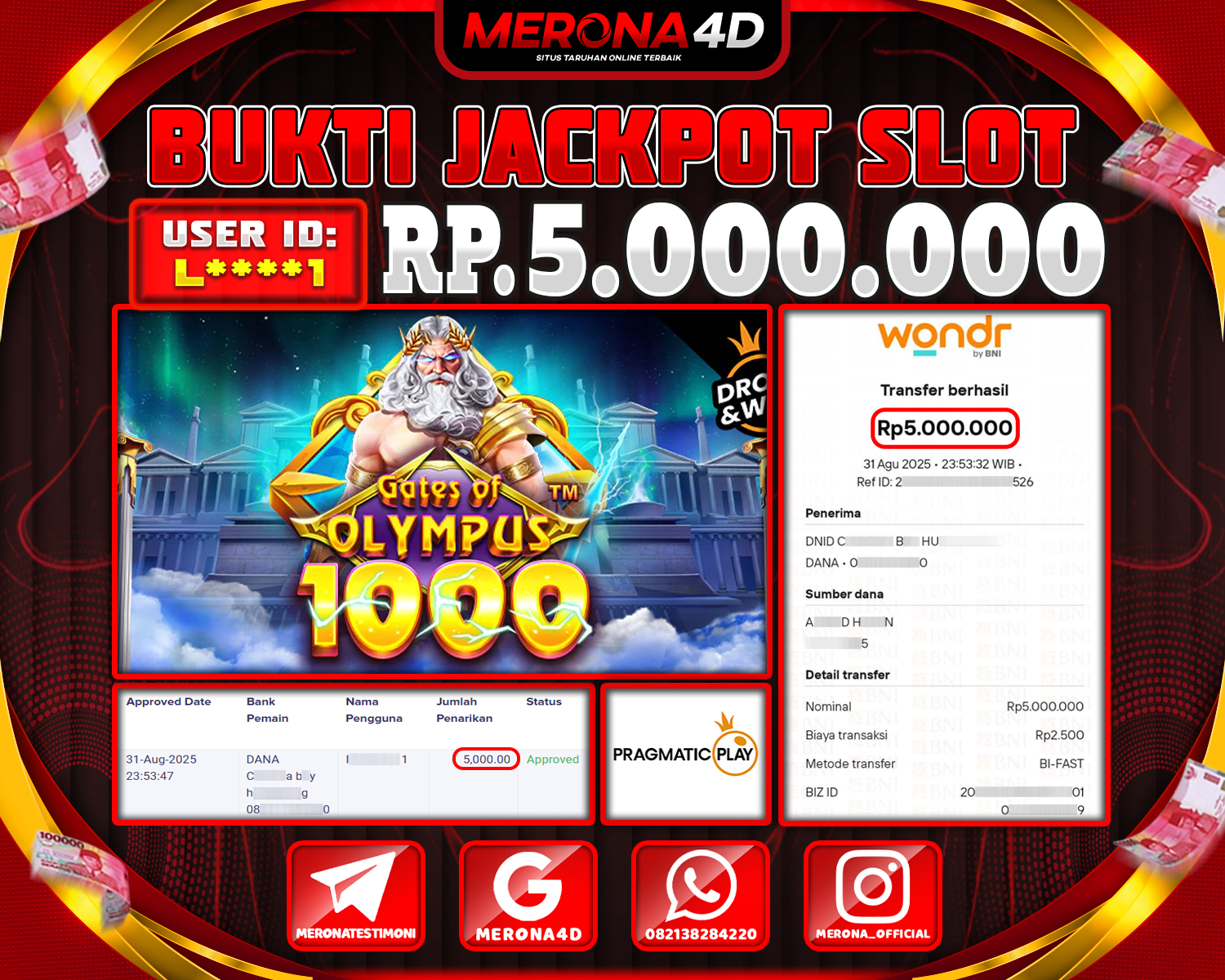 Selamat Kepada Member MERONA4D L****1 Telah Jackpot Di GATES OF OLYMPUS 1000