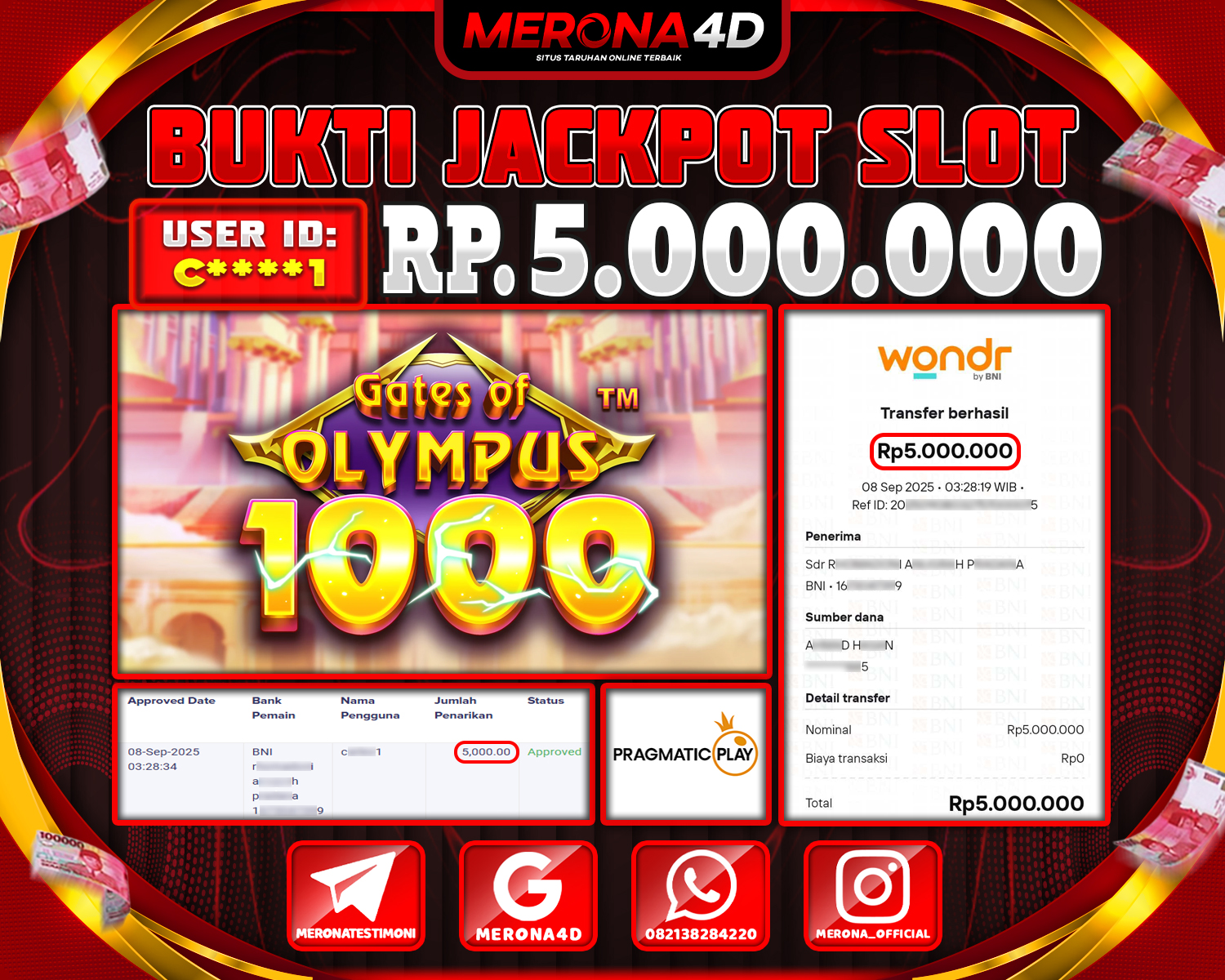 Selamat Kepada Member MERONA4D C****1 Telah Jackpot Di GATES OF OLYMPUS 1000