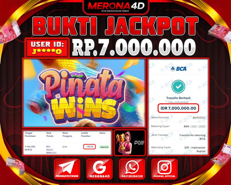 Selamat Kepada Member MERONA4D J****O Telah Jackpot Di PINATA WINS