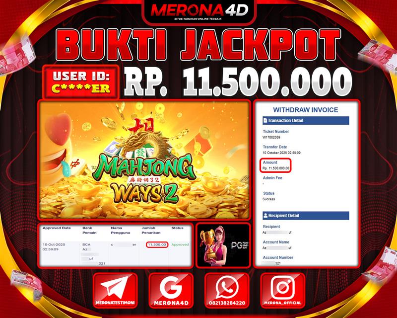 Selamat Kepada Member MERONA4D C*****ER Telah Jackpot Di MAHJONG WAYS 2