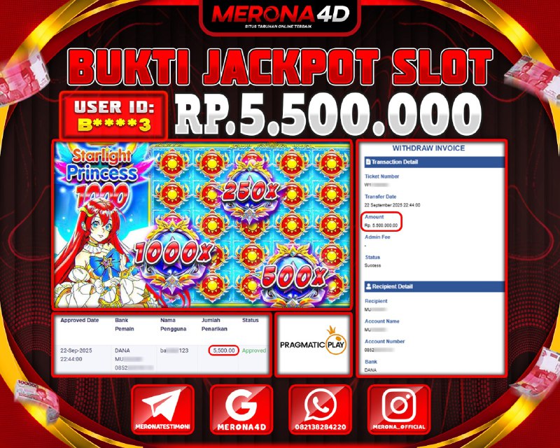 Selamat Kepada Member MERONA4D Bβ­‘οΏ½***οΏ½β­‘3 Telah Jackpot Di STARLIGHT PRINCESS 1000