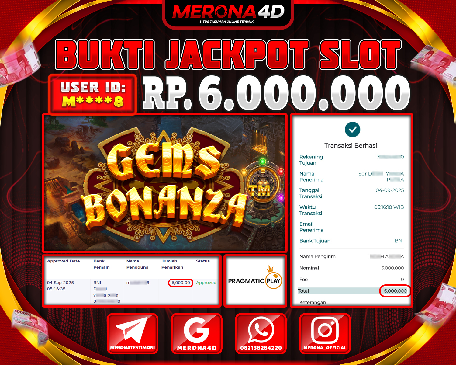 Selamat Kepada Member MERONA4D M****8 Telah Jackpot Di GAMES BONANZA