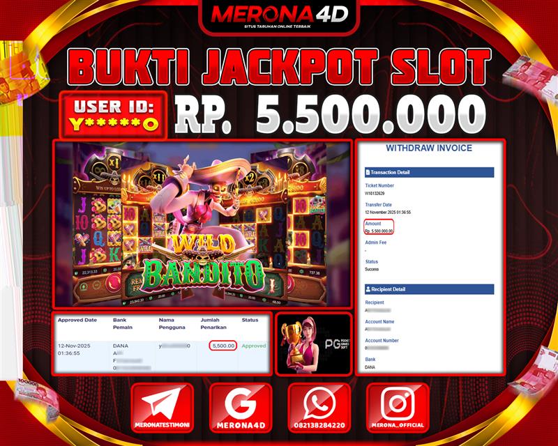 Selamat Kepada Member MERONA4D Y*****O Telah Jackpot Di WILD BANDITO