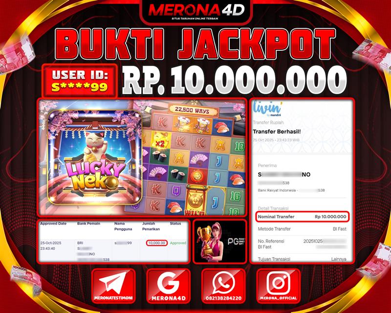 Selamat Kepada Member MERONA4D S*****99 Telah Jackpot Di LUCKY NEKO