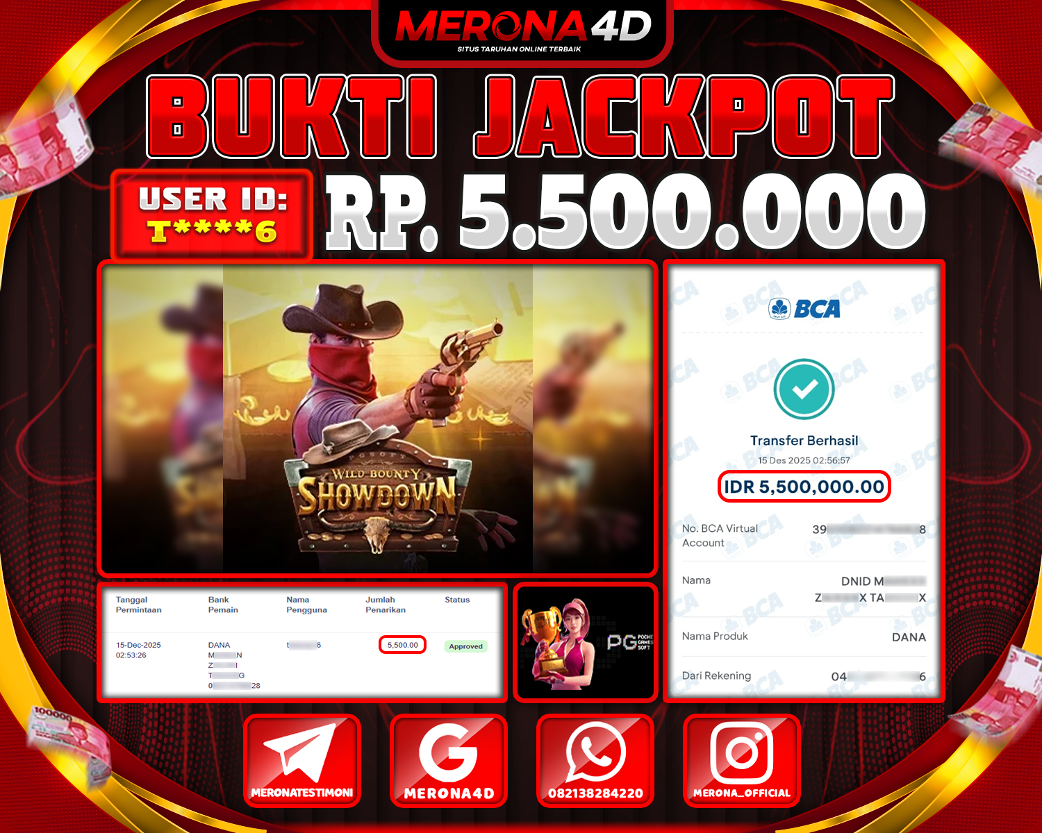 Selamat Kepada Member MERONA4D T****6 Telah Jackpot Di WILD BOUNTY SHOWDOWN