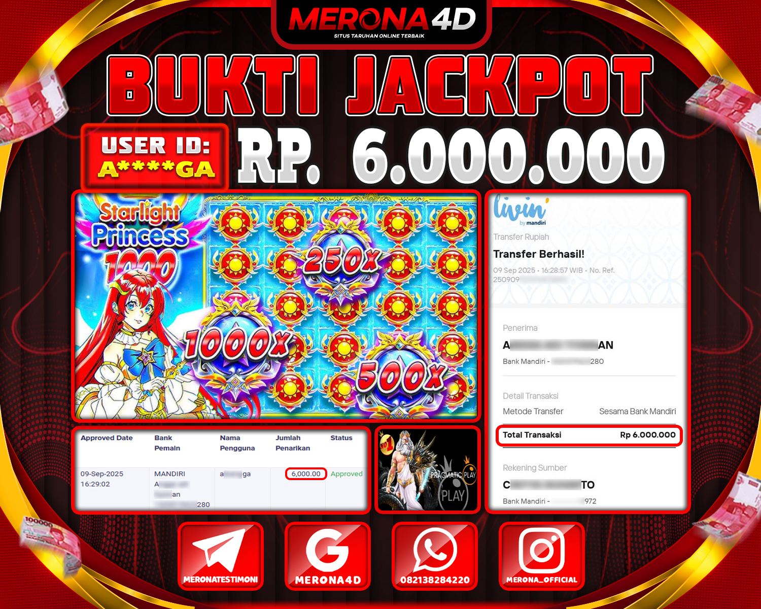 Selamat Kepada Member MERONA4D Aβ­‘β­‘***β­‘GA Telah Jackpot Di STARLIGHT PRINCESSβ„’ 1000