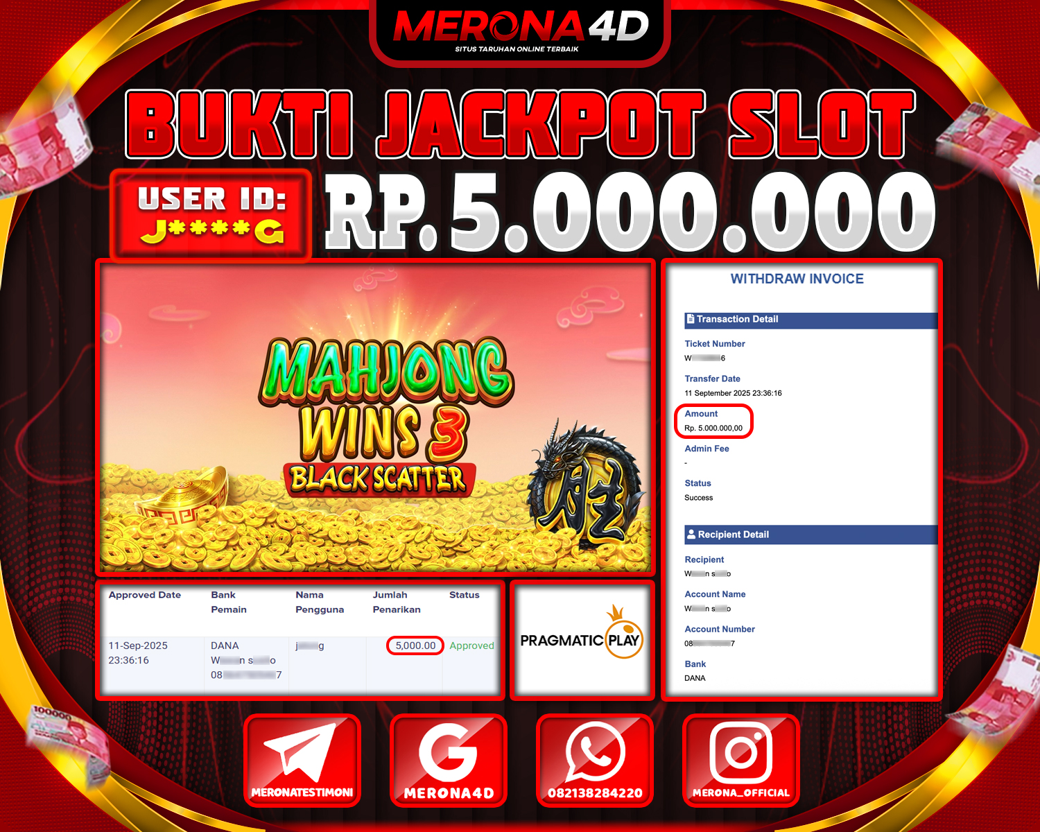 Selamat Kepada Member MERONA4D J****G Telah Jackpot Di MAHJONG WINS 3 – BLACK SCATTER
