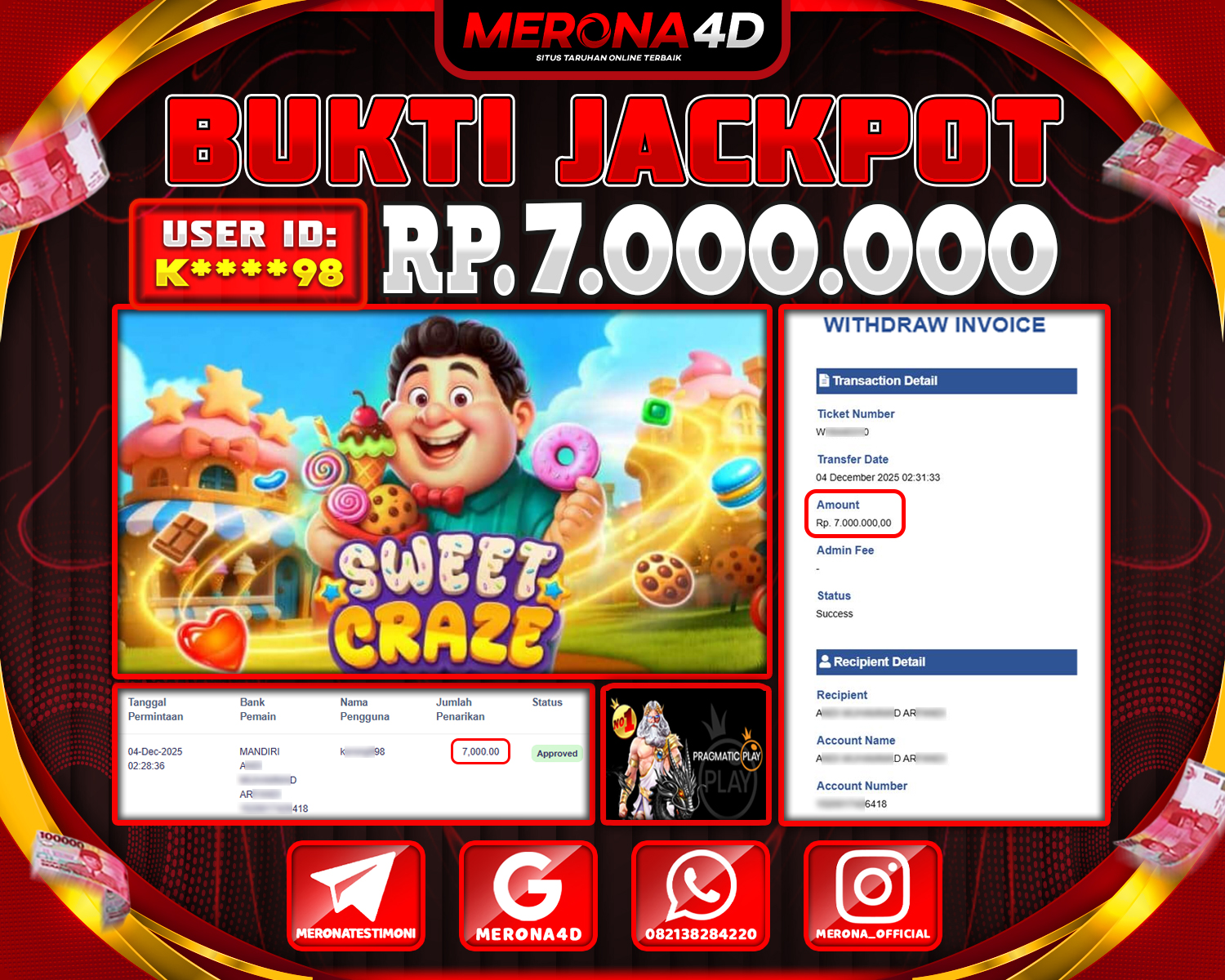 Selamat Kepada Member MERONA4D K*****98 Telah Jackpot Di SWEET CRAZE