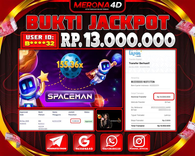 Selamat Kepada Member MERONA4D B*****2 Telah Jackpot Di SPACEMAN