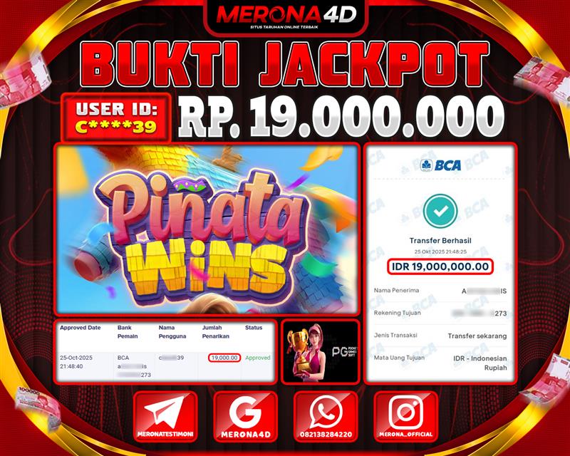 Selamat Kepada Member MERONA4D C*****39 Telah Jackpot Di PINATA WINS