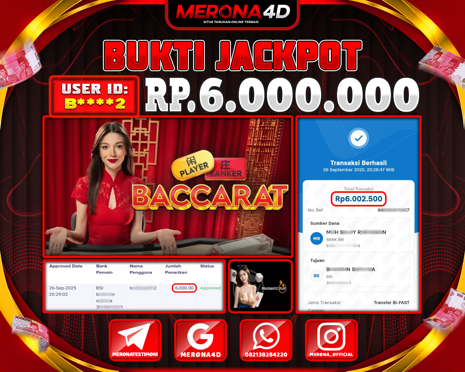 Selamat Kepada Member MERONA4D B****2 Telah Jackpot Di BACCARAT