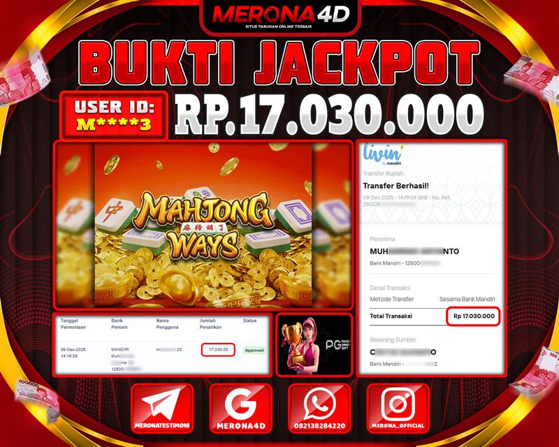 Selamat Kepada Member MERONA4D N****N Telah Jackpot Di MAHJONG WAYS