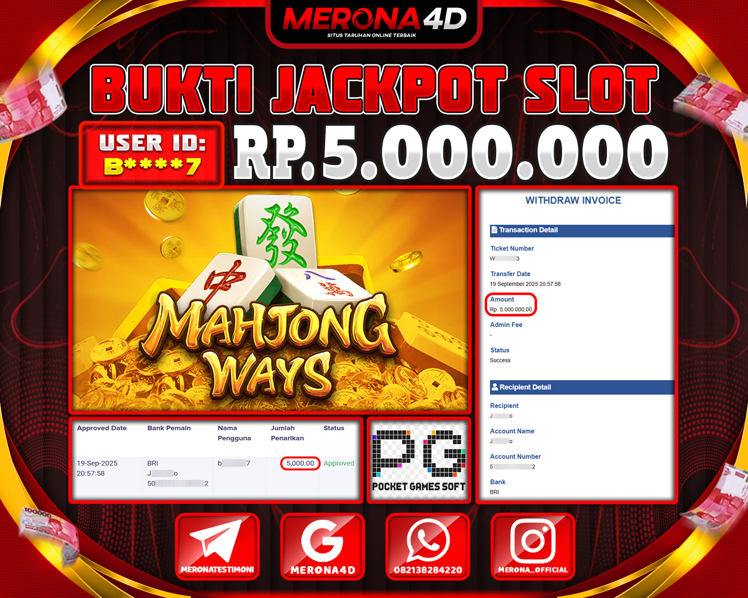 Selamat Kepada Member MERONA4D B****7 Telah Jackpot Di MAHJONG WAYS