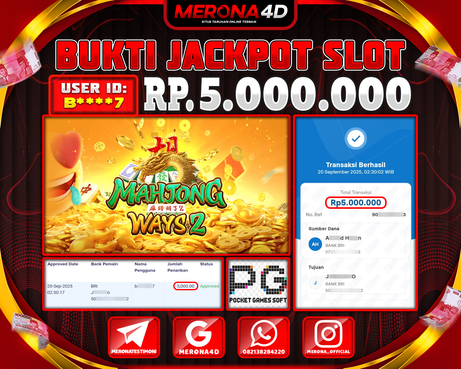 Selamat Kepada Member MERONA4D B****7 Telah Jackpot Di MAHJONG WAYS 2