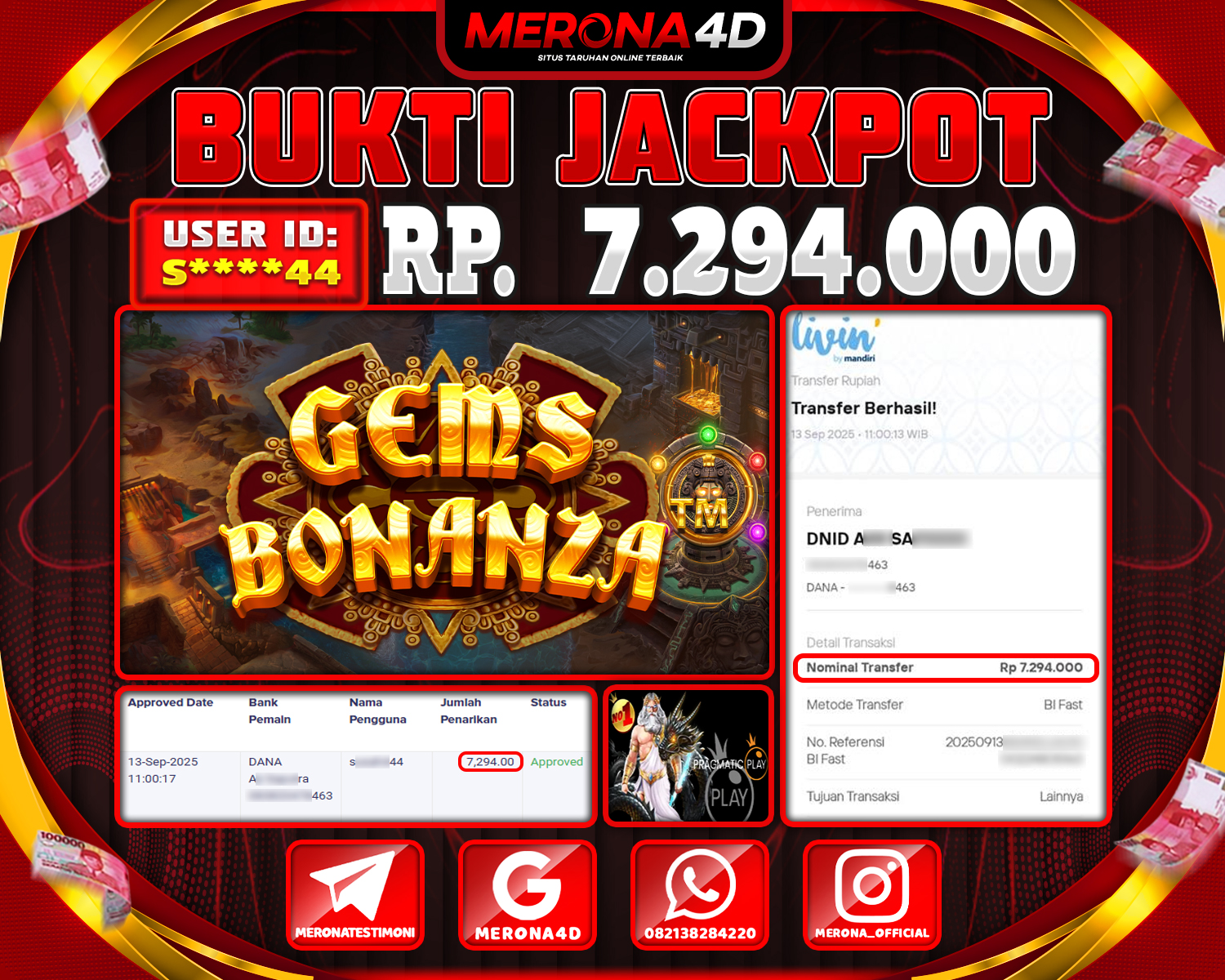 Selamat Kepada Member MERONA4D S*****44 Telah Jackpot Di GEMS BONANZA