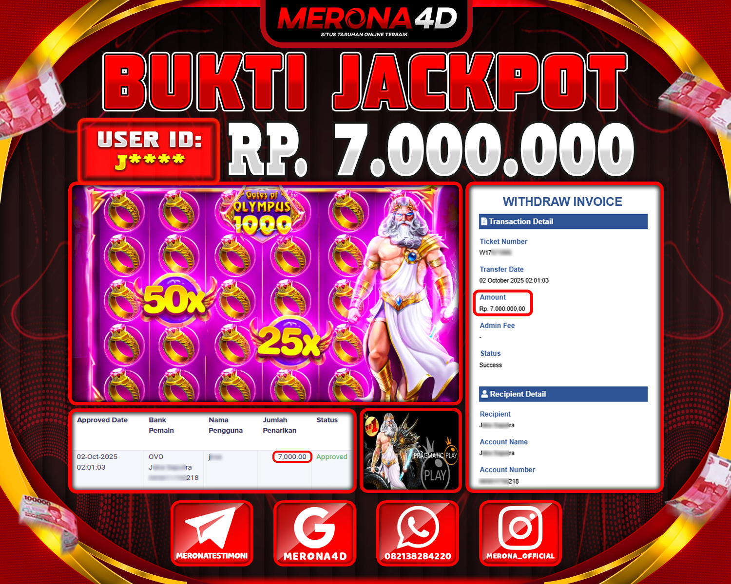 Selamat Kepada Member MERONA4D F****1 Telah Jackpot Di GATES OF OLYMPUS SUPER SCATTER