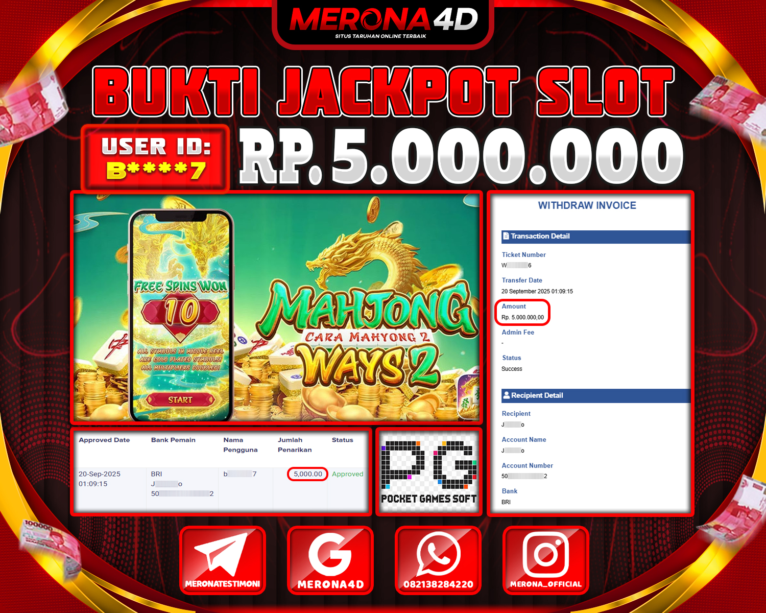 Selamat Kepada Member MERONA4D B****7 Telah Jackpot Di MAHJONG WAYS 2