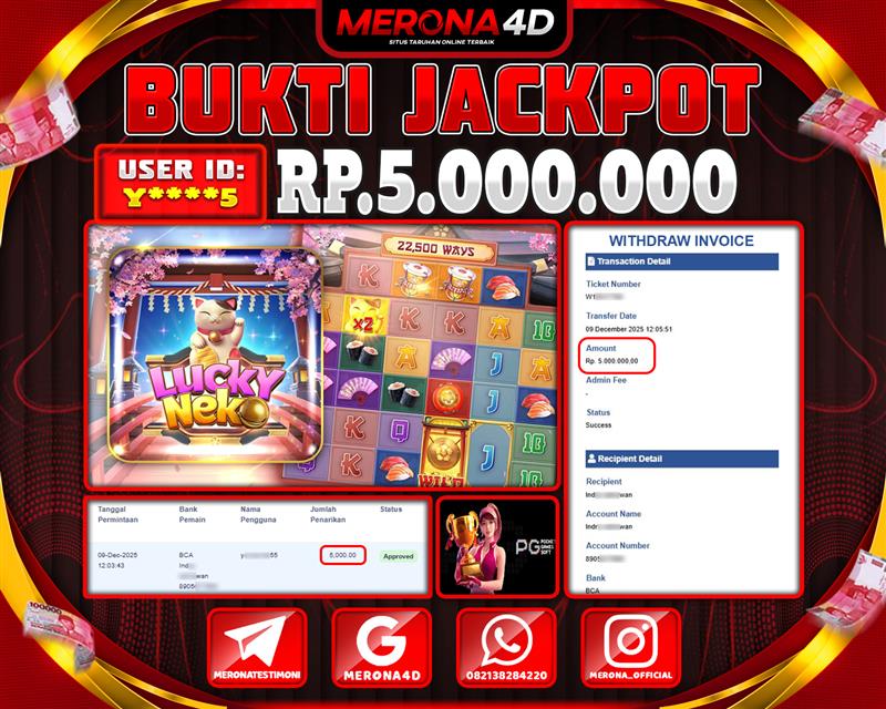 Selamat Kepada Member MERONA4D Y****5 Telah Jackpot Di LUCKY NEKO