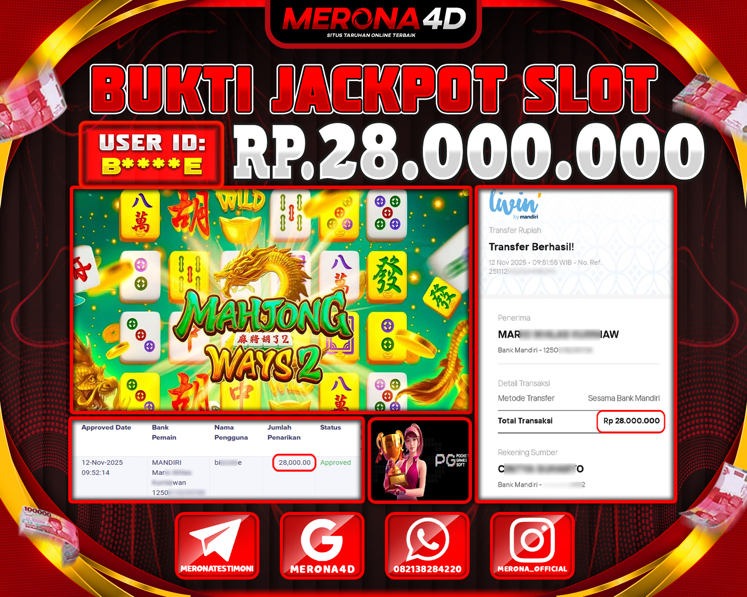 Selamat Kepada Member MERONA4D N****N Telah Jackpot Di MAHJONG WAYS