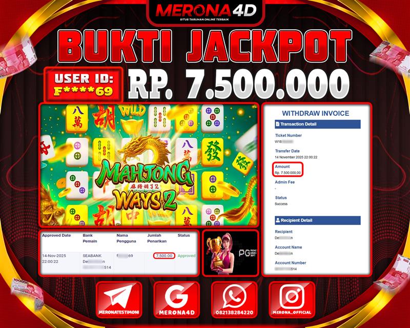 Selamat Kepada Member MERONA4D F*****69 Telah Jackpot Di MA
